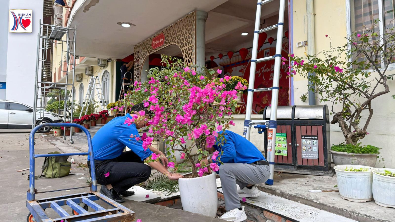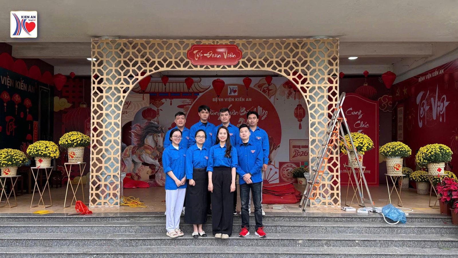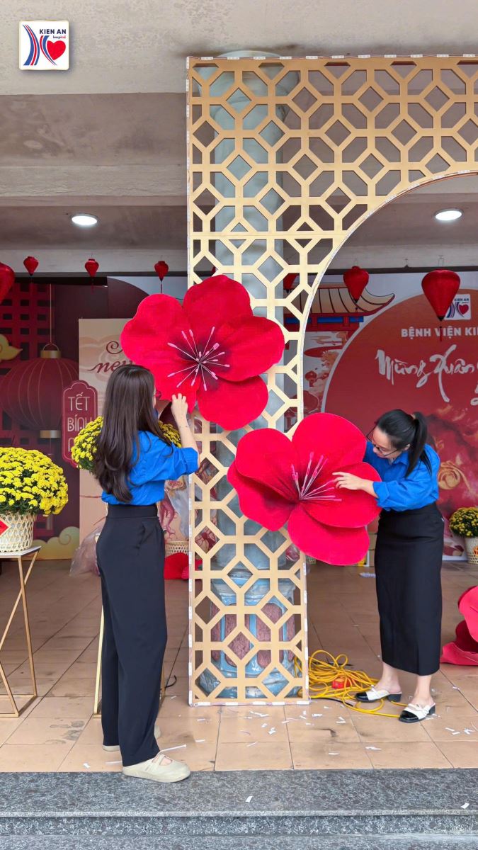 Hòa chung không khí rộn ràng đón Tết cổ truyền của dân tộc, Đoàn Thanh niên Bệnh viện Kiến An đã tích cực ra quân trang trí góc Tết, đồng thời tham gia chỉnh trang nội viện, chăm sóc cây xanh, góp phần tạo nên không gian bệnh viện xanh – sạch – đẹp – ấm áp nghĩa tình.