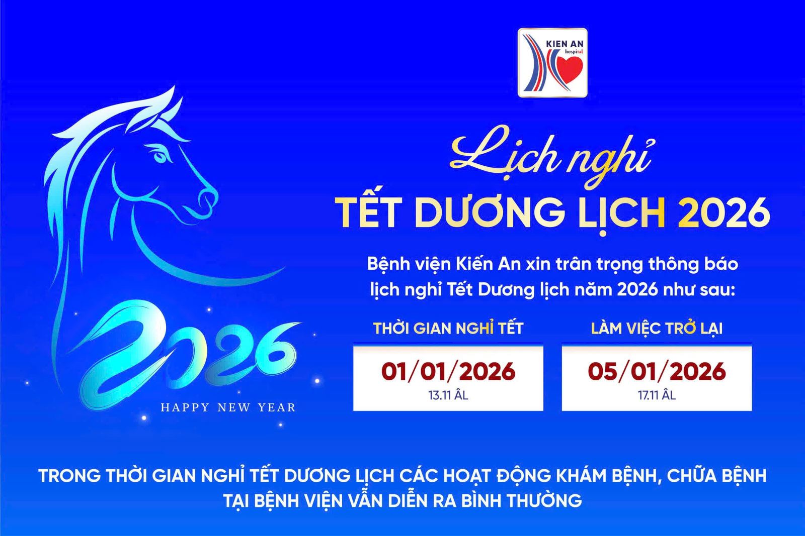 Nhân dịp Tết Dương lịch 2026, Bệnh viện Kiến An trân trọng gửi tới quý người bệnh, thân nhân người bệnh cùng toàn thể cán bộ, viên chức, người lao động lời chúc sức khỏe – hạnh phúc – bình an!