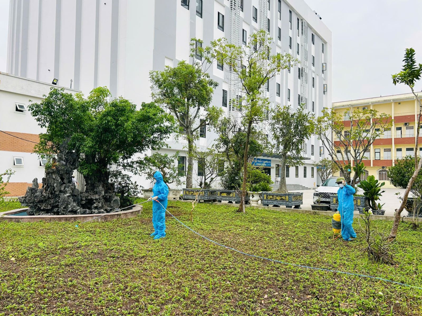 Khoa Kiểm soát nhiễm khuẩn giám sát quá trình thực hiện tại khu vực tường tòa nhà, vườn cây, hệ thống cống rãnh, lối đi nội bộ; các khoa điều trị được bố trí, sắp xếp phun theo lộ trình phù hợp và thực hiện lau dọn phòng trước khi sử dụng để đảm bảo an toàn, hiệu quả, đúng quy định.