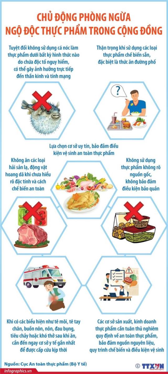 Nguy cơ ngộ độc thực phẩm tiềm ẩn trong cả thực phẩm tự nhiên và thực phẩm chế biến sẵn. Người dân tuyệt đối không sử dụng cá nóc làm thực phẩm dưới bất kỳ hình thức nào do chứa độc tố nguy hiểm, có thể gây ảnh hưởng trực tiếp đến thần kinh và tính mạng. Đồng thời, cần thận trọng khi sử dụng các loại thực phẩm chế biến sẵn, đặc biệt là thức ăn đường phố; lựa chọn cơ sở uy tín, bảo đảm điều kiện vệ sinh an toàn thực phẩm…