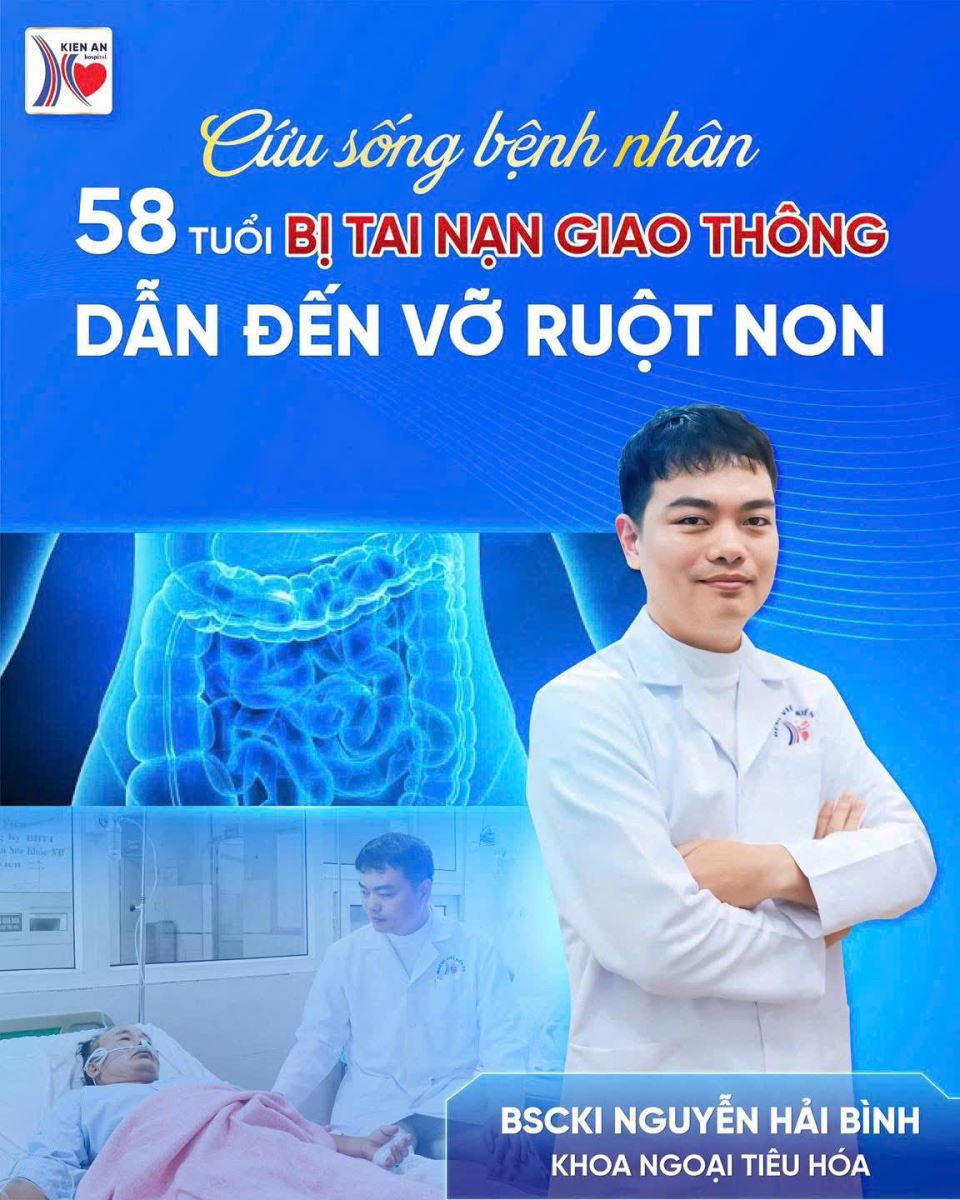 Bệnh viện Kiến An vừa phẫu thuật nội soi thành công cho bệnh nhân Vũ Văn T. (58 tuổi), trú tại Đông Hưng – Hưng Yên, chuyển đến từ Bệnh viện Vĩnh Bảo trong tình trạng đau bụng dữ dội sau tai nạn giao thông.