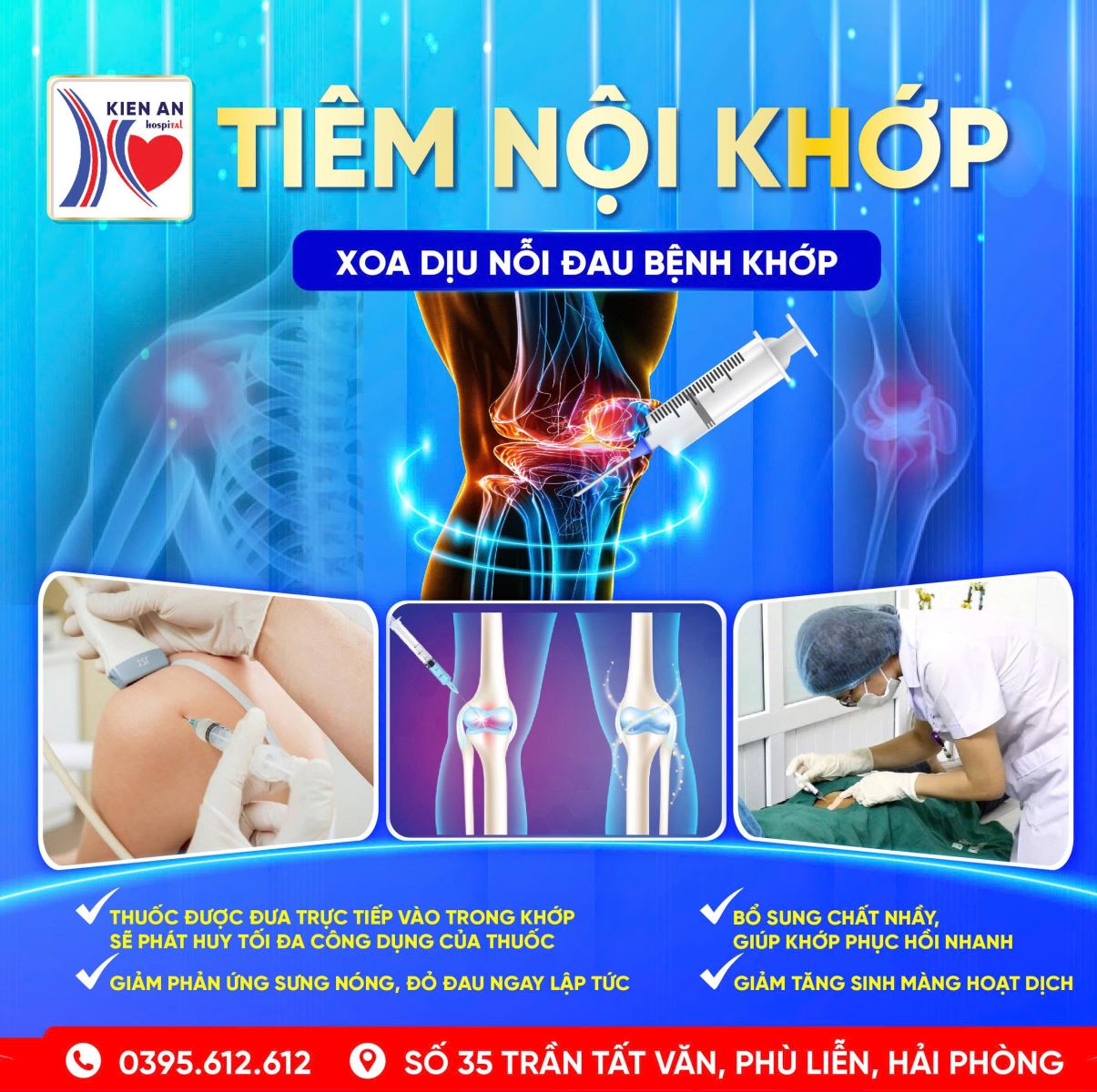 Tại khoa Nội tổng hợp - Bệnh viện Kiến An các bác sĩ chuyên ngành Cơ xương khớp với trình độ chuyên môn cao, giàu kinh nghiệm đã áp dụng kỹ thuật Tiêm nội khớp vào điều trị cho bệnh nhân có bệnh lý về khớp An toàn và hiệu quả. Gặp vấn đề về khớp hãy liên hệ ngay chúng tôi tư vấn bảo vệ khớp toàn diện.