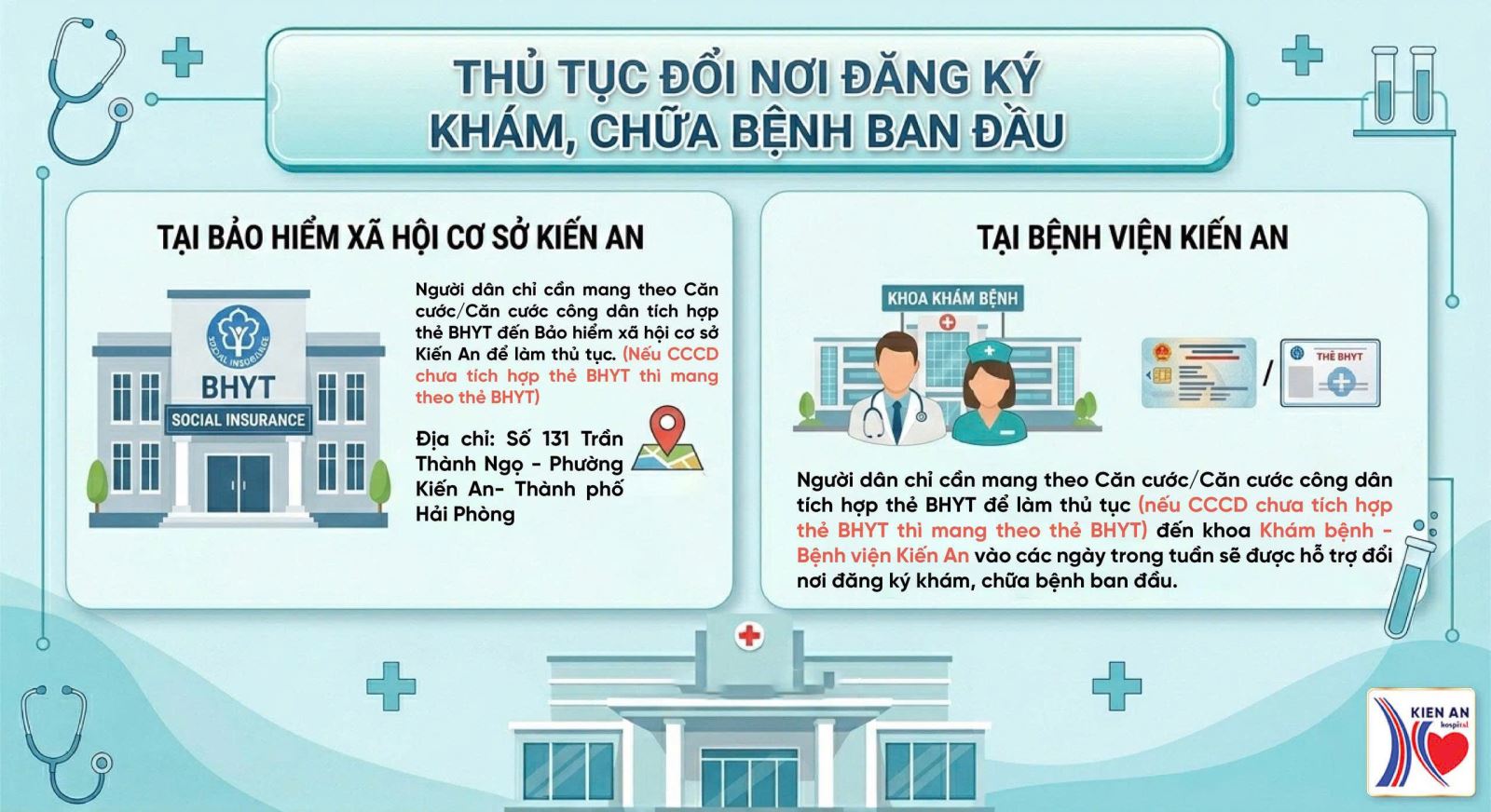 Từ ngày 03/02/2026, Bệnh viện Kiến An được Sở Y tế phân bổ bổ sung thẻ bảo hiểm y tế khám chữa bệnh bảo hiểm y tế ban đầu tại Bệnh viện Kiến An